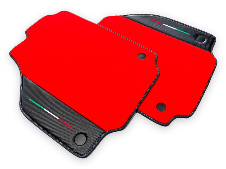 These custom floor mats for the Ferrari F8 Spider are expertly crafted with luxurious carbon leather for a sleek and stylish look. Designed specifically for the 2019-2022 model, they provide superior protection for your car's interior while adding a touch of sophistication. Upgrade your Ferrari experience with these premium floor mats.