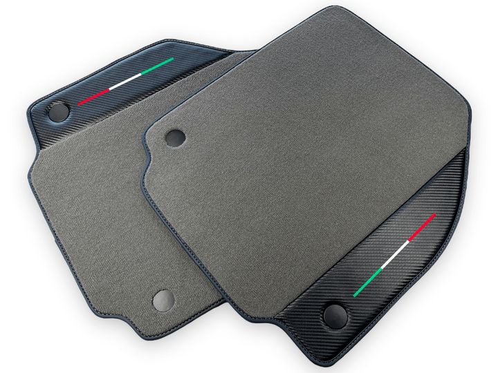 Upgrade your Ferrari F8 Spider's interior with our luxury Gray Floor Mats With Carbon Fiber Leather. Keep your car clean and stylish with these custom-fit mats, providing superior protection against dirt and wear. Elevate your driving experience with our high-quality, expertly crafted floor mats.