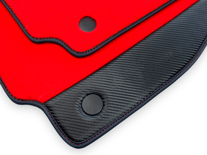 Upgrade the interior of your Ferrari 488 Spider with these striking Red Floor Mats made from carbon fiber. Protect your floors while adding a touch of luxury to your ride. Specifically designed for the 2015-2022 model, these mats are a perfect fit and add a sleek, modern look to your vehicle.